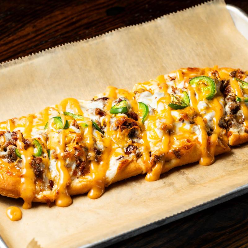 Our classic burger, reimagined. Mama sauce base, seasoned ground beef, jalapeno, and bacon, topped with a blend of cheddar and mozzarella cheese and an extra drizzle of mama sauce.
